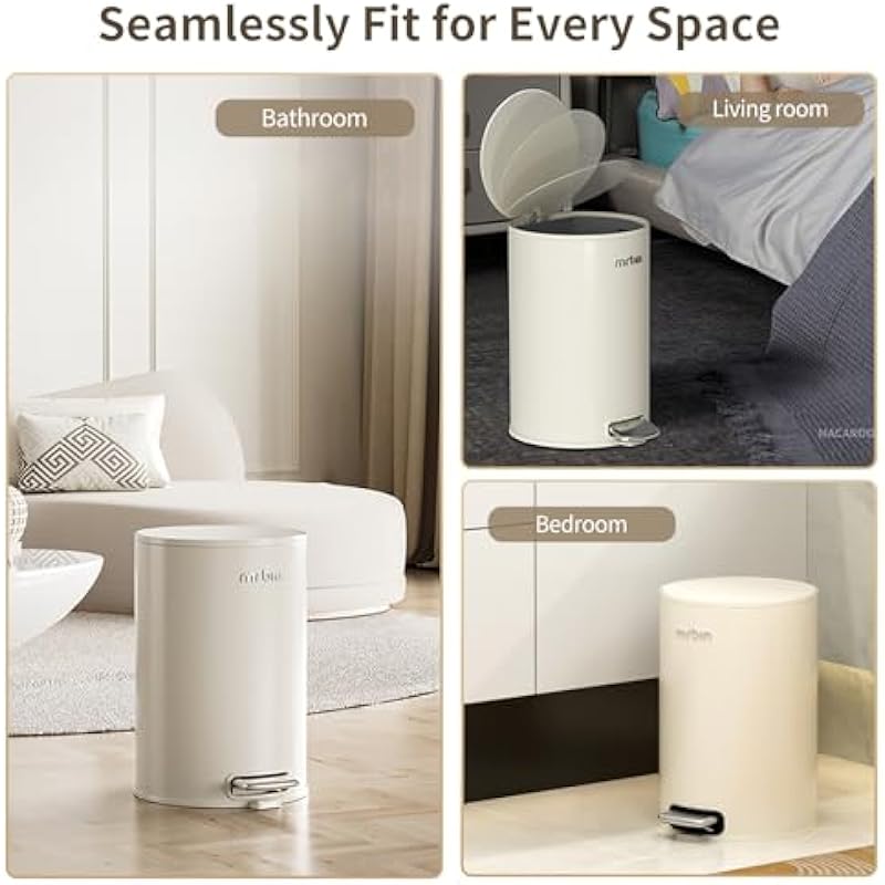Be the first to review “MRBIN Small Metal Bathroom Trash Can with Lid, Step Waste Basket for Bedroom, 6L / 1.6gal Round Garbage Pail Kitchen with Plastic Inner Bucket and Stainless Steel Pedal, White” Cancel reply