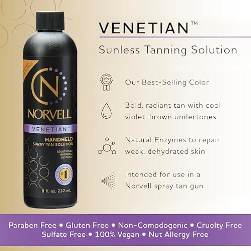 Norvell Premium Professional Sunless Tanning Spray Tan Solution – Venetian, 8 fl.oz.