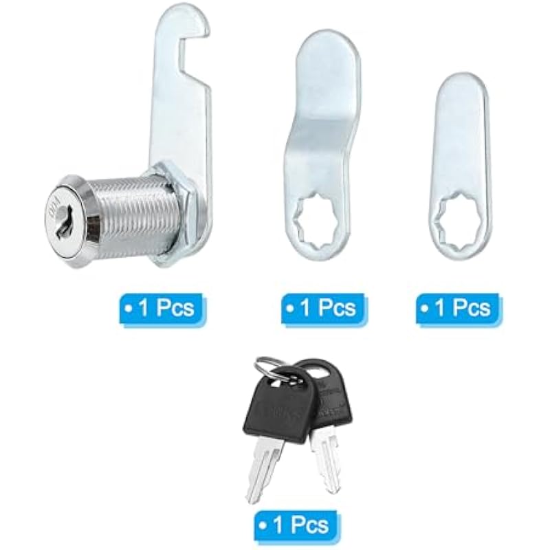 - Keyed Type: Keyed Different; Cylinder Length: 30mm / 1-1/8 inch; Cylinder Diameter: 18mm / 0.7 inch; Head Diameter: 23mm / 0.9 inch; Packing List: 1 x Cam Lock, 2 x Keys, 3 x Lock Plates (screw accessories Included)