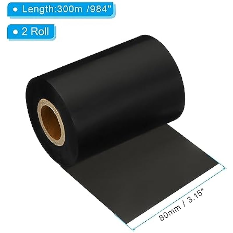 - Specification: Color: Black; Material: Carbon, Paper; Core Diameter:1 Inch; Ink Face: Ink Out; Over Size: 80mmx300m / 3.15″x984′ (W*L); Package List: 2 Roll x Thermal Transfer Ribbons
