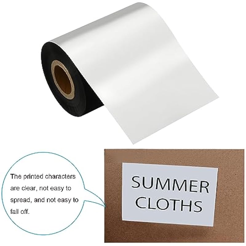 - NOTE: There is a tape at the front of the volume, which can effectively protect the thinner carbon ribbon, and can be wound on the recovery tube when recycling.<br>Please choose the width of the ribbon according to your printer, the width of the ribbon is a little bigger than the width of the printer. Please store the ribbon in a ventilated environment to avoid moisture and exposure, which will affect the quality and printing effect of the ribbon.