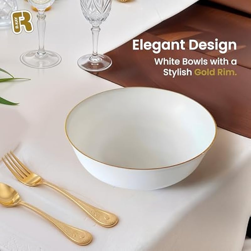 R-kay Gold Plastic Bowls Disposable Heavy Duty – 16 Oz Gold Plastic Soup Bowls – 30 Pack Disposable Soup Bowls – Premium Quality Upscale Disposable Bowls for Hot Soup, Salads
