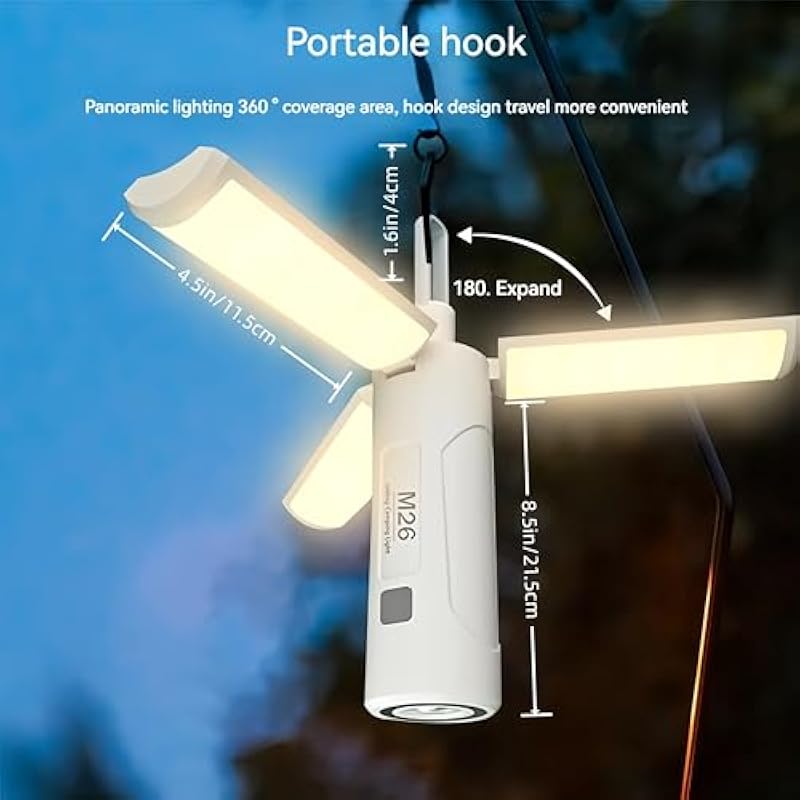 - 🔥【Portable & Durable Camping lights Design】Crafted from durable ABS material with a smart folding design, Clearhill’s camp lighting is compact (8.8×1.97 in) and lightweight (6.5 oz/pcs). Easy to carry in a backpack or by hand, and the built-in hook allows convenient hanging on backpacks, tents, or tree branches.Take it anywhere – camping, hiking, boating, or for home use during power outages; sturdy construction withstands rough conditions.