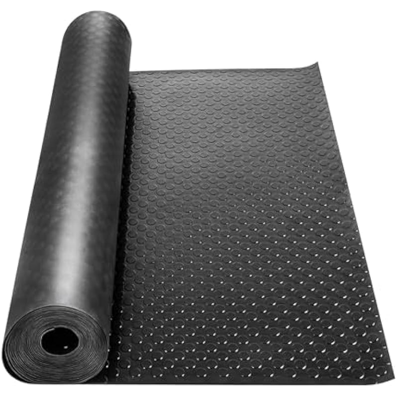 Rubber Mat Roll 3.28×9.84 ft (100x300cm), 3mm Thick Heavy-Duty Coin Pattern Flooring, Non-Slip Waterproof Utility Mat for Garage, Gym, Workshop, Van & Parking Protection