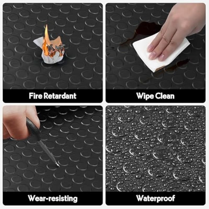 - Easy to Customize & Clean for Convenience: Tailor this mat to your exact space effortlessly—easily cut it with a utility knife for a perfect fit. Maintenance is simple; just vacuum, sweep, or use a wet/dry mop to quickly wipe away spills, dirt, and grease, keeping it looking new