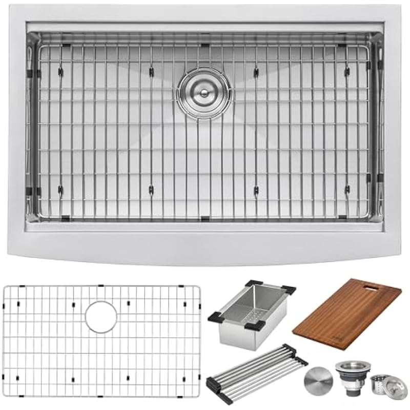 Ruvati RVH9200 Apron Front 16 Gauge 33″ Kitchen Single Bowl Sink, Stainless Steel