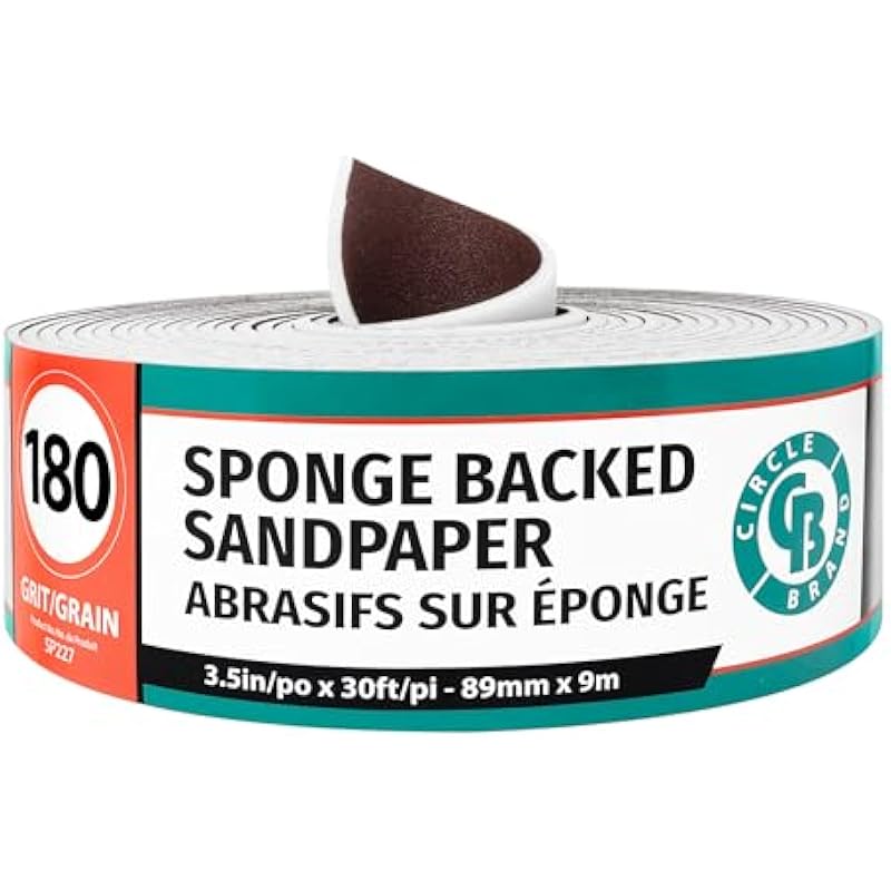 Sandpaper Roll 3.5″ x 30′ #180 Grit (Sponge-Back) | Circle Brand | Drywall Gyprock Plasterboard Sheetrock | SP227