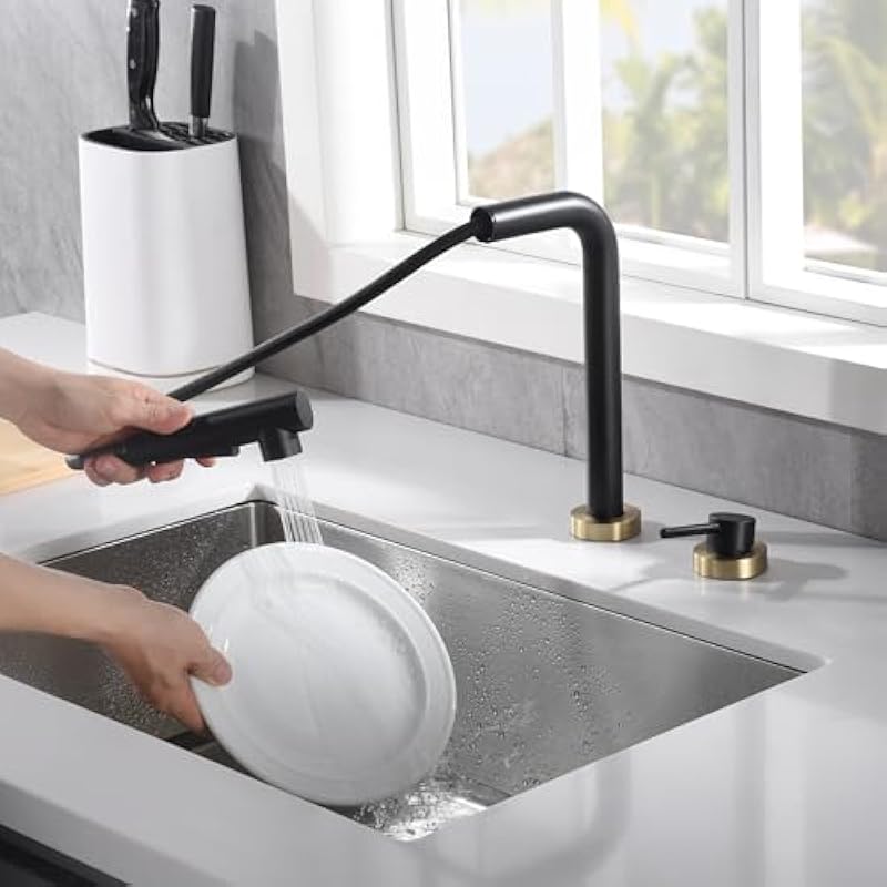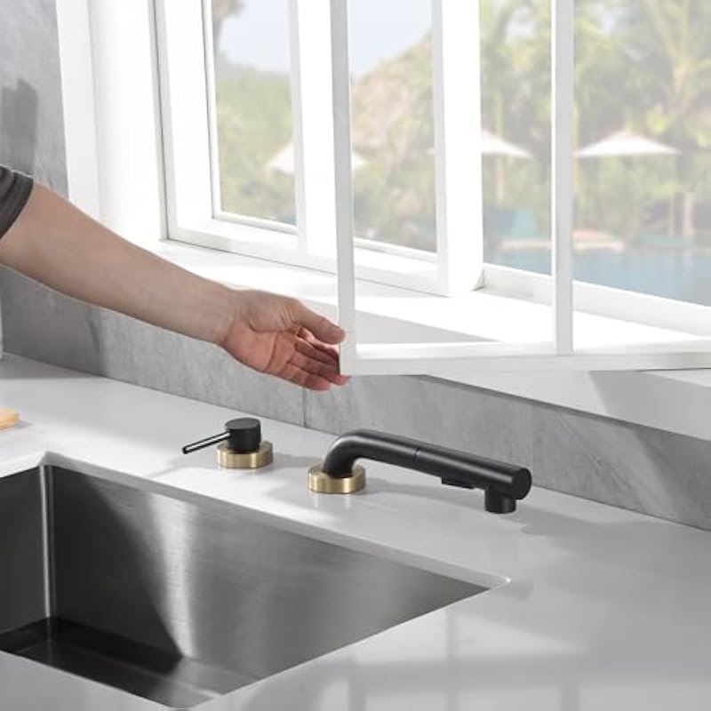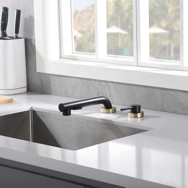Be the first to review “SUMERAIN Kitchen Sink Faucet 2 Hole with Pull Out Sprayer and Side Handle, Black and Gold” Cancel reply