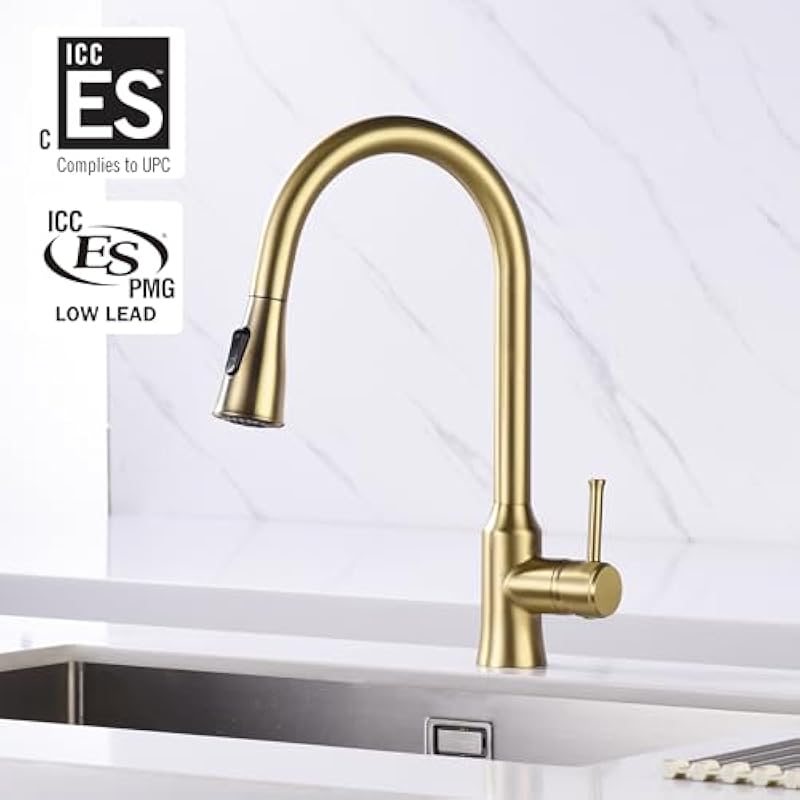 - 1.Pull-Down Kitchen Faucet: This ICC-ES PMG certified pull-down kitchen faucet features a 360-degree swivel design, allowing users to direct water flow precisely where needed, covering every corner for versatile kitchen cleaning tasks.