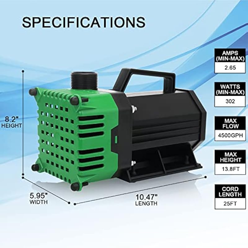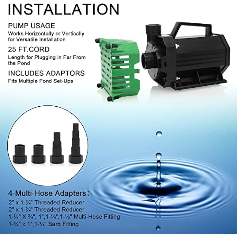 - 【VERSATILE MULTI-USE PUMP】BARST’s powerful and high-lift submersible water pumps can be used in many places, such as duck ponds, koi ponds, gardens, fountains, waterfalls, hydroponic systems, irrigation systems, and water features. They can be ideally used as waterfall pumps, filter system pumps, koi circulation pumps, and aquarium pumps.