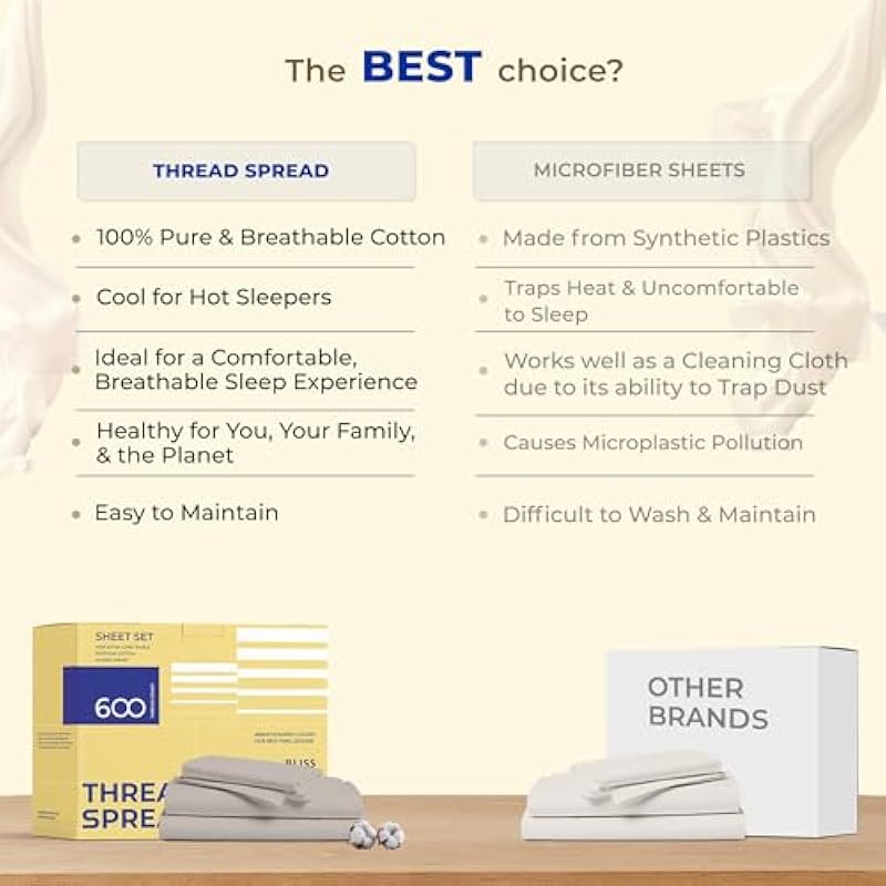 Be the first to review “THREAD SPREAD 100% Egyptian Cotton Sheets Set California King Size – 600 Thread Count 4 PC White Luxury Sheet Cal King Size, Soft, Cooling Hotel Luxury Bed Sheets & Pillowcases, Fits Mattress upto 18″” Cancel reply