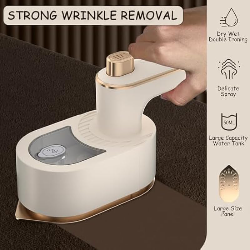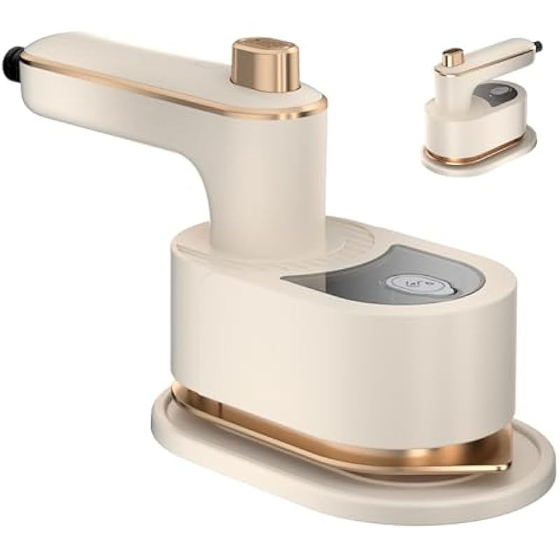 Travel Steamer Iron, Mini Portable Steam Ironing Machine with 30S Quick Preheating, A Must-have Multi Angle Iron with Rotating Handle for Travel, University Dormitories, Offices & Homes (Beige)