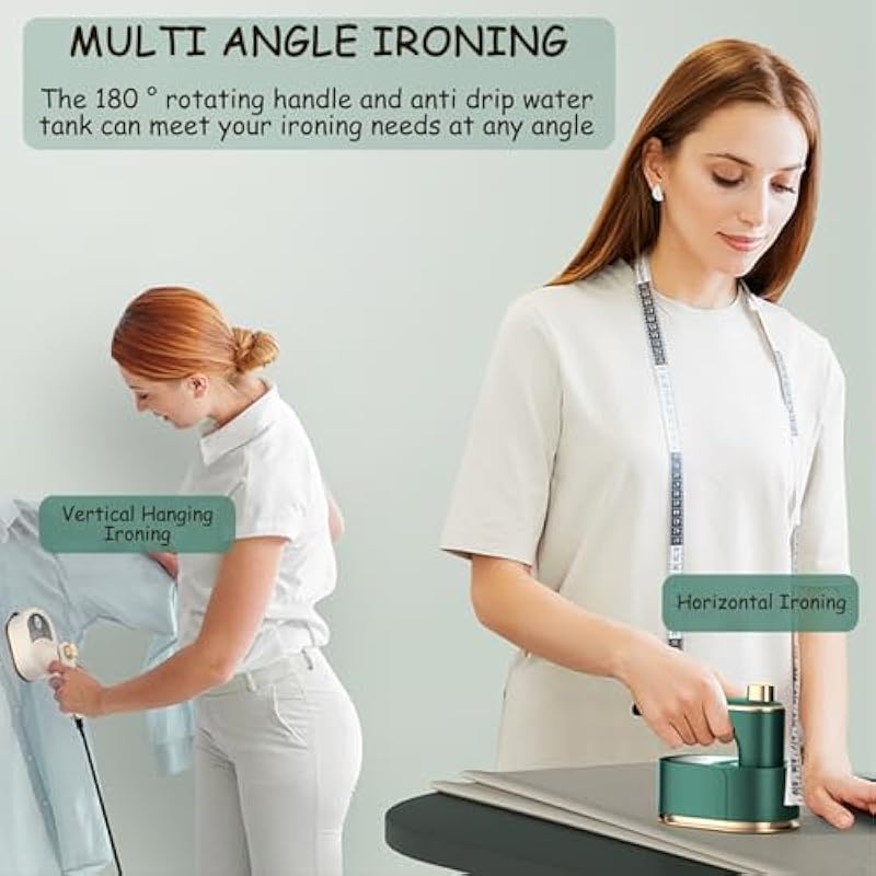 Travel Steam Iron, 180 °Rotating Handle Foldable Hanging Ironing Machine, Portable Mini Dual-Purpose Steam Iron for Both Dry and Wet Use, Essential for School Dormitories & Business Trips (Green)