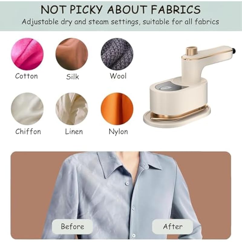 - Suitable for All Fabrics: This small iron has a smooth bottom plate and uses constant temperature ironing to safely iron any material, including delicate and durable fabrics such as silk, wool, lace, nylon blends, cotton, linen, etc. You no longer need to worry about damaging your favorite clothes during ironing, and you can also delicately take care of plush toys, curtains, and other items