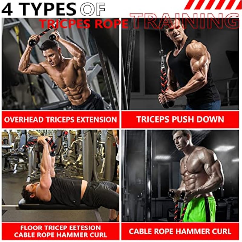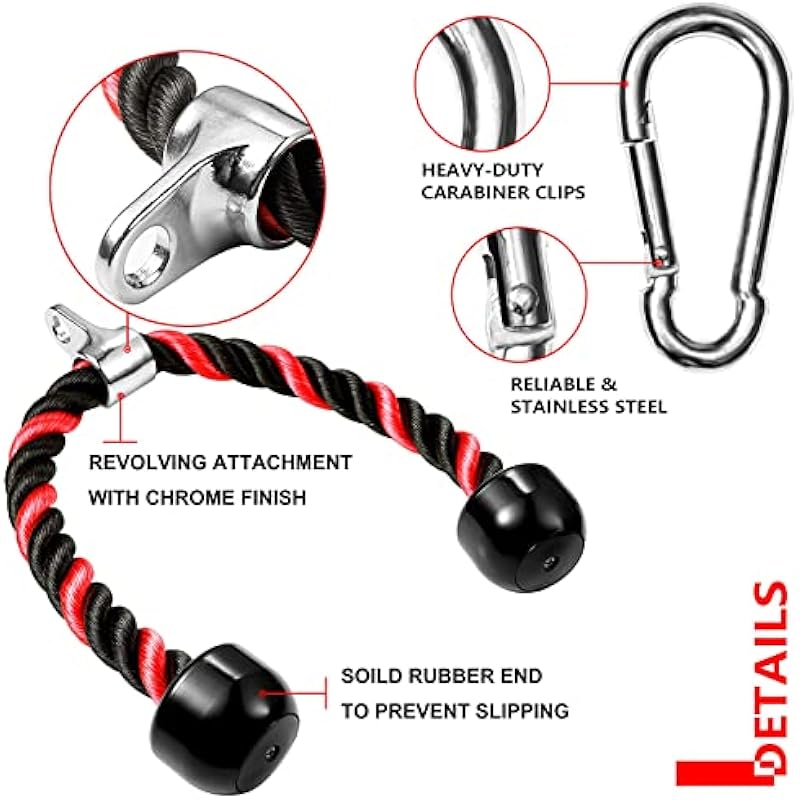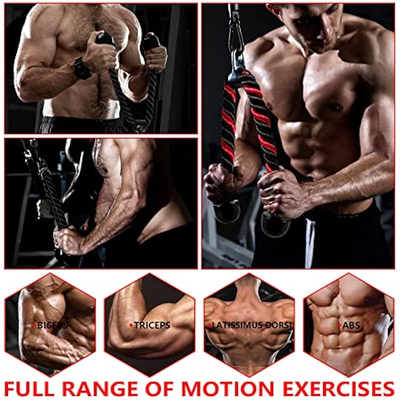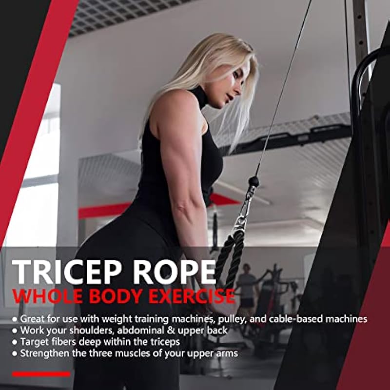 - Workout — Triceps rope attachment is one of the must-have products for home gym workouts and can be used on weights, abs, cable crossovers, or any pulley system to maximize your fitness. Pulling with one hand or with both hands will do its job well and achieve the desired fitness effect.