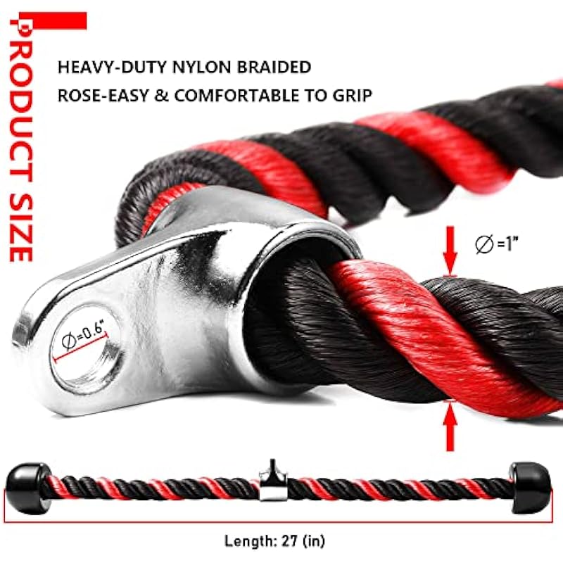 - Applicability – The rope is 27 inches in length to develop your triceps, biceps, back, shoulders, abs and grip strength, especially when pressing the rope down, it creates a lot of pressure, maximizing stability and support, perfect for increasing triceps.