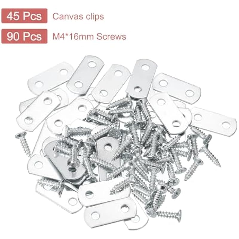 - [What You Get] – Package content comes with 10 pcs of offset canvas clips and 20 pcs of screws. The following size: Overall Size: 30 x 13mm/1.18 x 0.51inch(L*W); Height: 0/0 Flush(0mm); Thickness: 1.2mm/0.05inch; Hole diameter: 5mm/0.2inch; Hole Quantity: 2; Screw Size: M4 x 16mm.