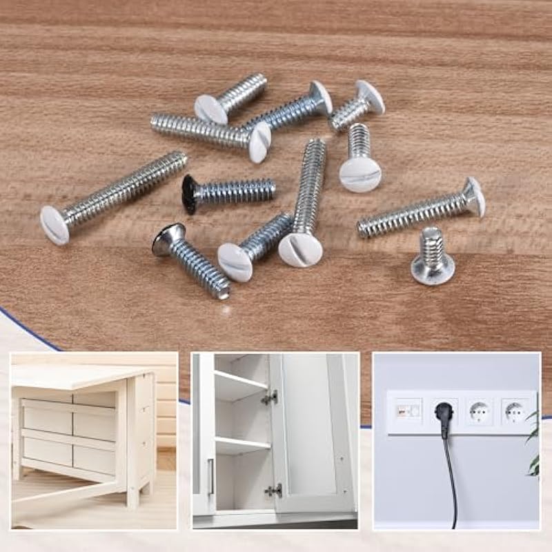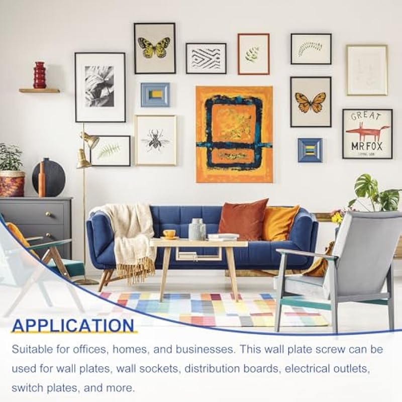 - [Application] – Suitable for offices, homes, and businesses. This wall plate screw can be used for wall plates, wall sockets, distribution boards, electrical outlets, switch plates, and more.