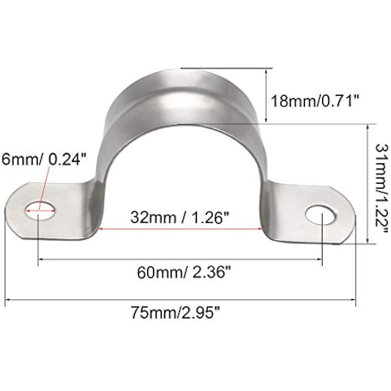 - Size: Fit Pipe Diameter: 32mm / 1.26″; Mounted Hole Dia: 6mm/ 0.24″; Total Size: 75 x 18 x 31mm/ 2.95″ x 0.71″ x 1.22″ (L*W*H); Thickness: 0.6mm; Color: Silver Tone
