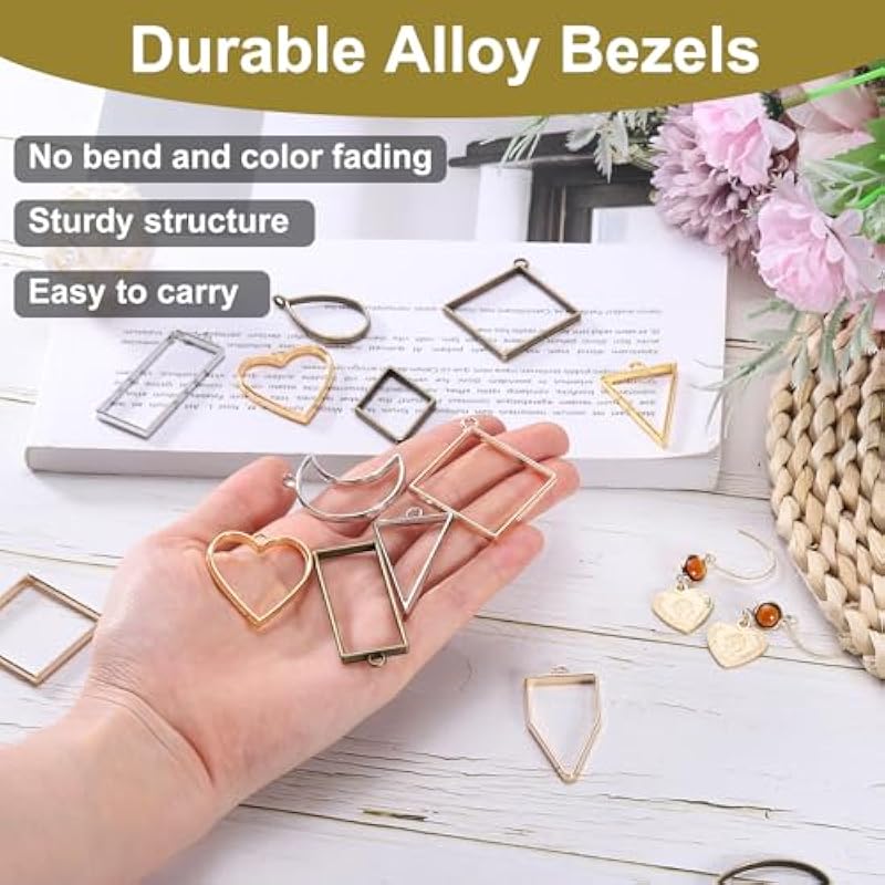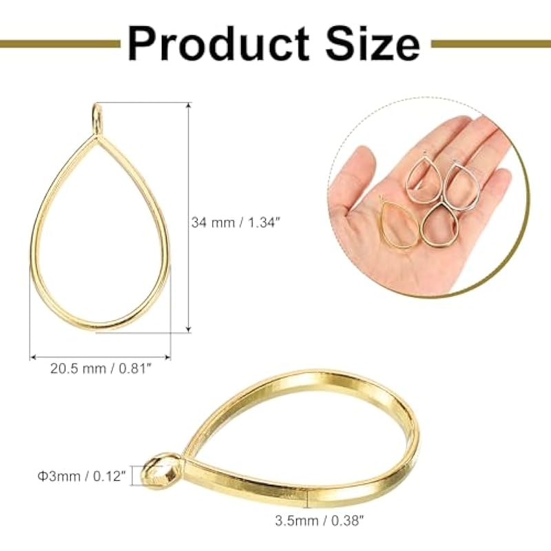 uxcell Alloy Open Bezel Pendants, Teardrop Hollow Frame Pendant Geometric Open Back Frame Pendant for Jewelry Making Earrings Necklace Bracelet DIY