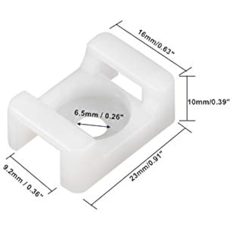- Product Name: Cable Tie Mount; Screw Hole Dia.: 6.5mm / 0.26″; Tie Mount Hole Width: 9.2mm / 0.36″