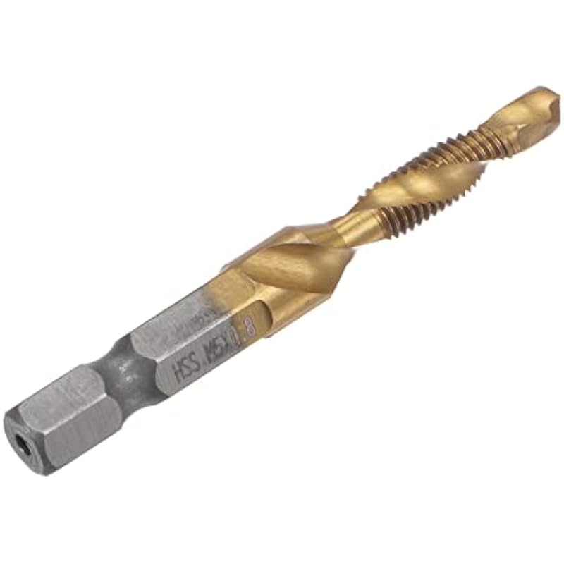 uxcell Combination Drill and Tap Bit, 1/4″ Hex Shank M5 x 0.8 Metric Titanium Coated High Speed Steel 4341 Spiral Flute Drilling Tapping Tool 2pcs