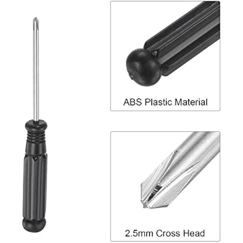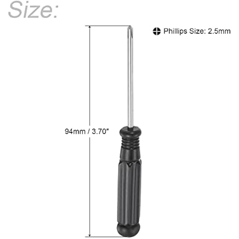 - Size – 2.5mm cross head, 3.70″ (94mm) total length. This screwdriver is a small screwdriver, suitable for handling some small screws, such as those used in electronic products, glasses, watches, etc.