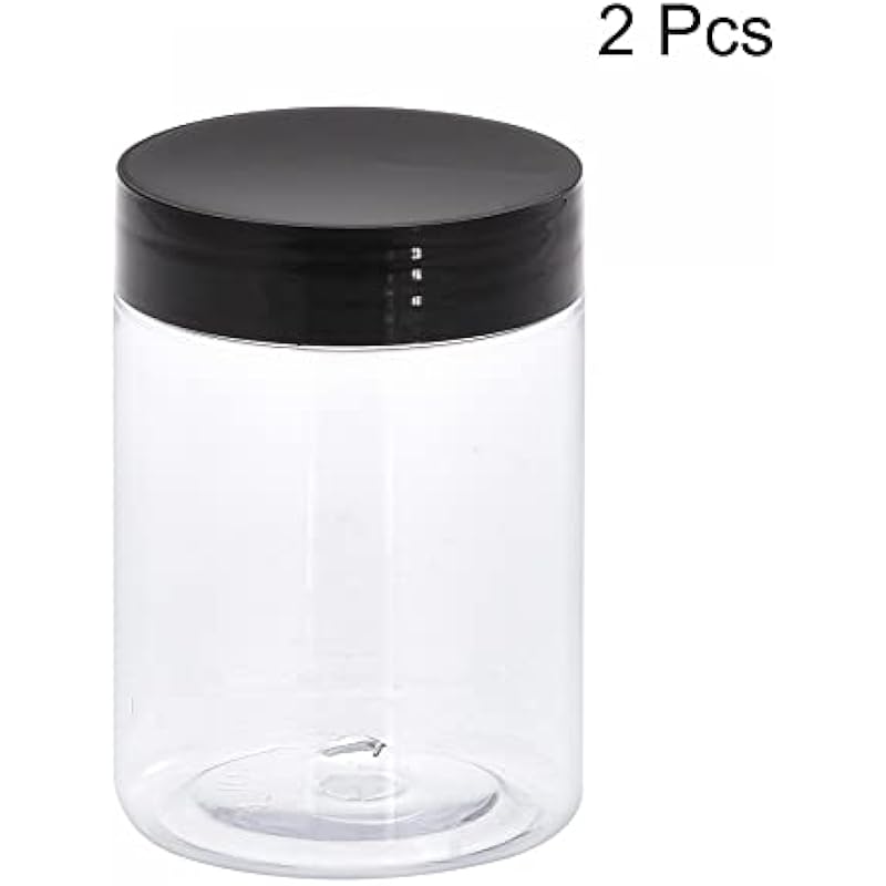 uxcell Round Plastic Jars with Black Screw Top Lid, 10oz/ 300ml Wide-Mouth Clear Empty Containers for Storage, Organizing, 2Pcs