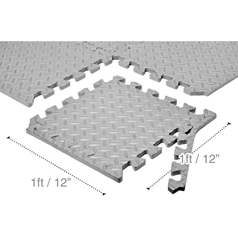 - Each tile measures 12” x 12” and is 1/2” thick. Covers 12 square feet. Also includes 14 smooth edge pieces.