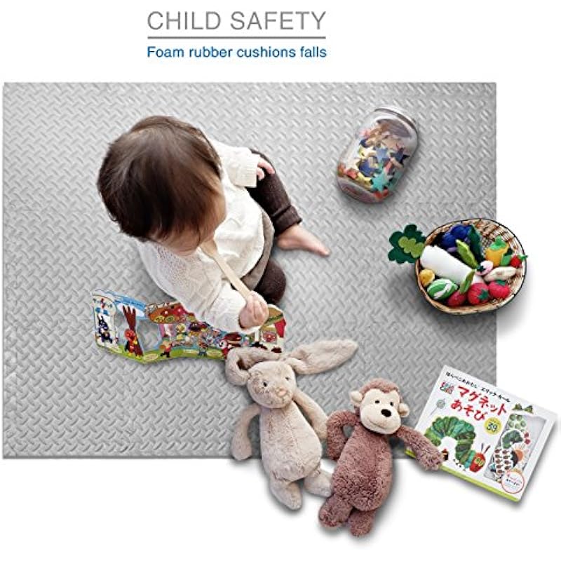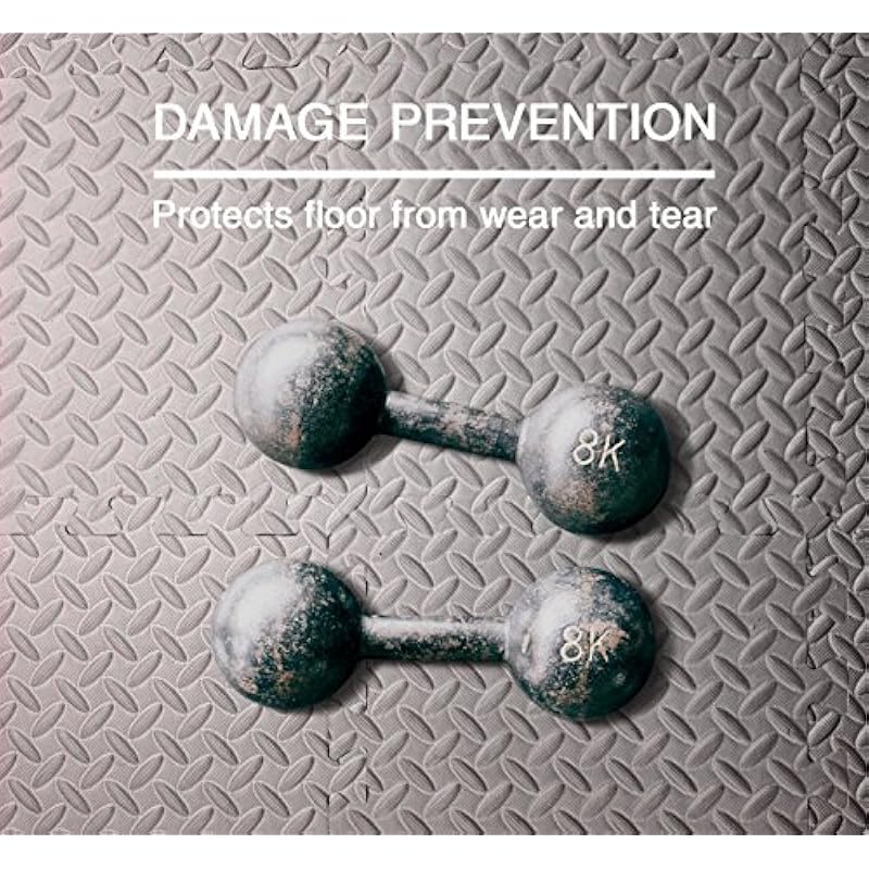 - Highly durable, non-toxic EVA foam tiles features non-skid texture protects floors while absorbing impacts and dampening sound.