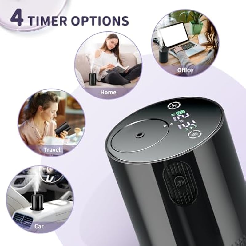 Waterless Essential Oil Diffuser Portable: Cordless Diffuser Battery Operated for Car and Office – Room Aromatherapy Scent Machine – USB Rechargeable Scent Diffusers for Home(Purple)