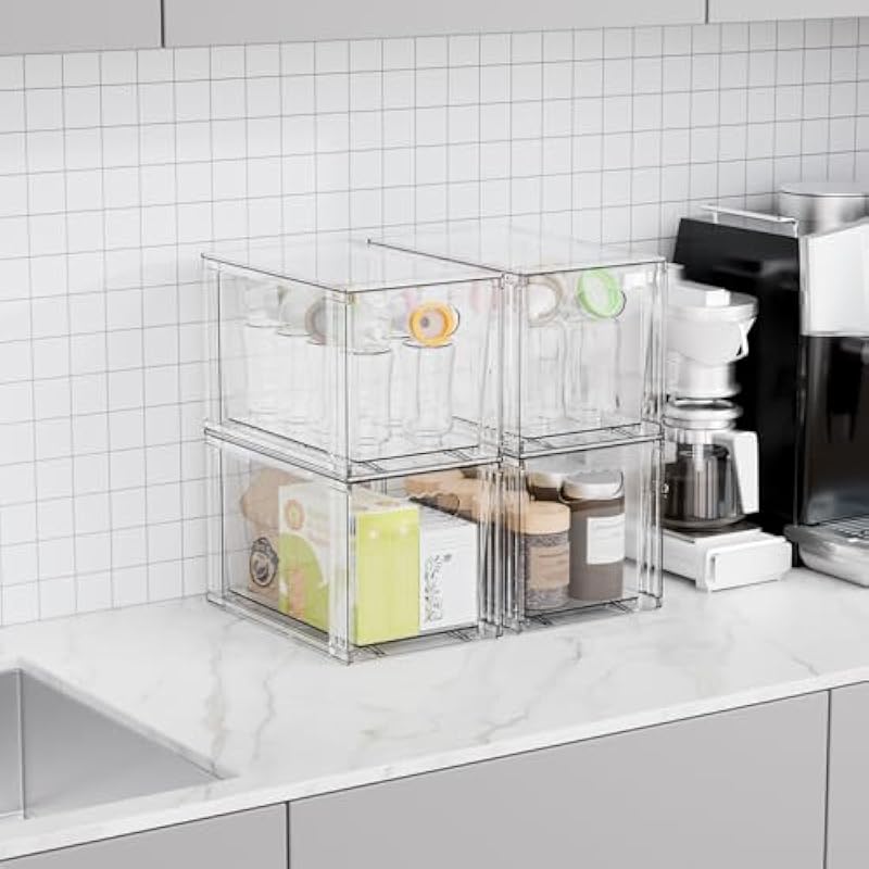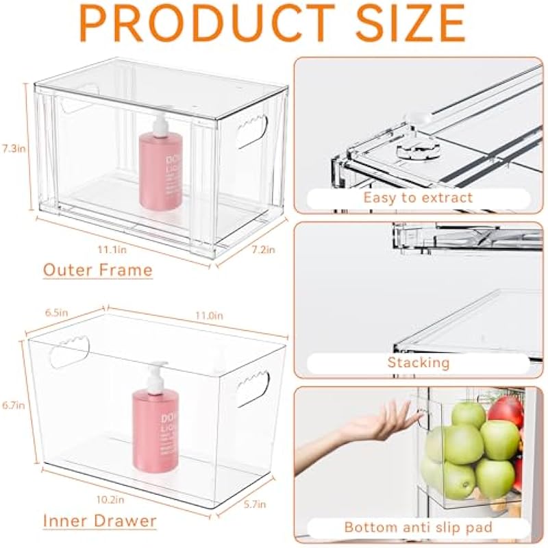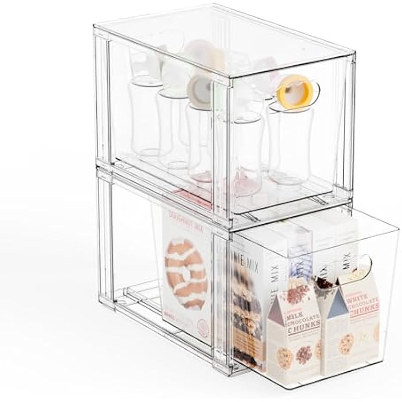 - 【Multi-use/Stacking Storage Bins】This clear cabinet storage bin allows you to accurately see what you want to take, saving you time,Suitable for home edit organizer bins,Very suitable as baby bottle organizer,plastic storage bins,stackable drawers,acrylic drawers,medicine storage,pantry storage bins,under bed storage drawers,bathroom closet organizer,bins for closet organization,fridge drawer organizer